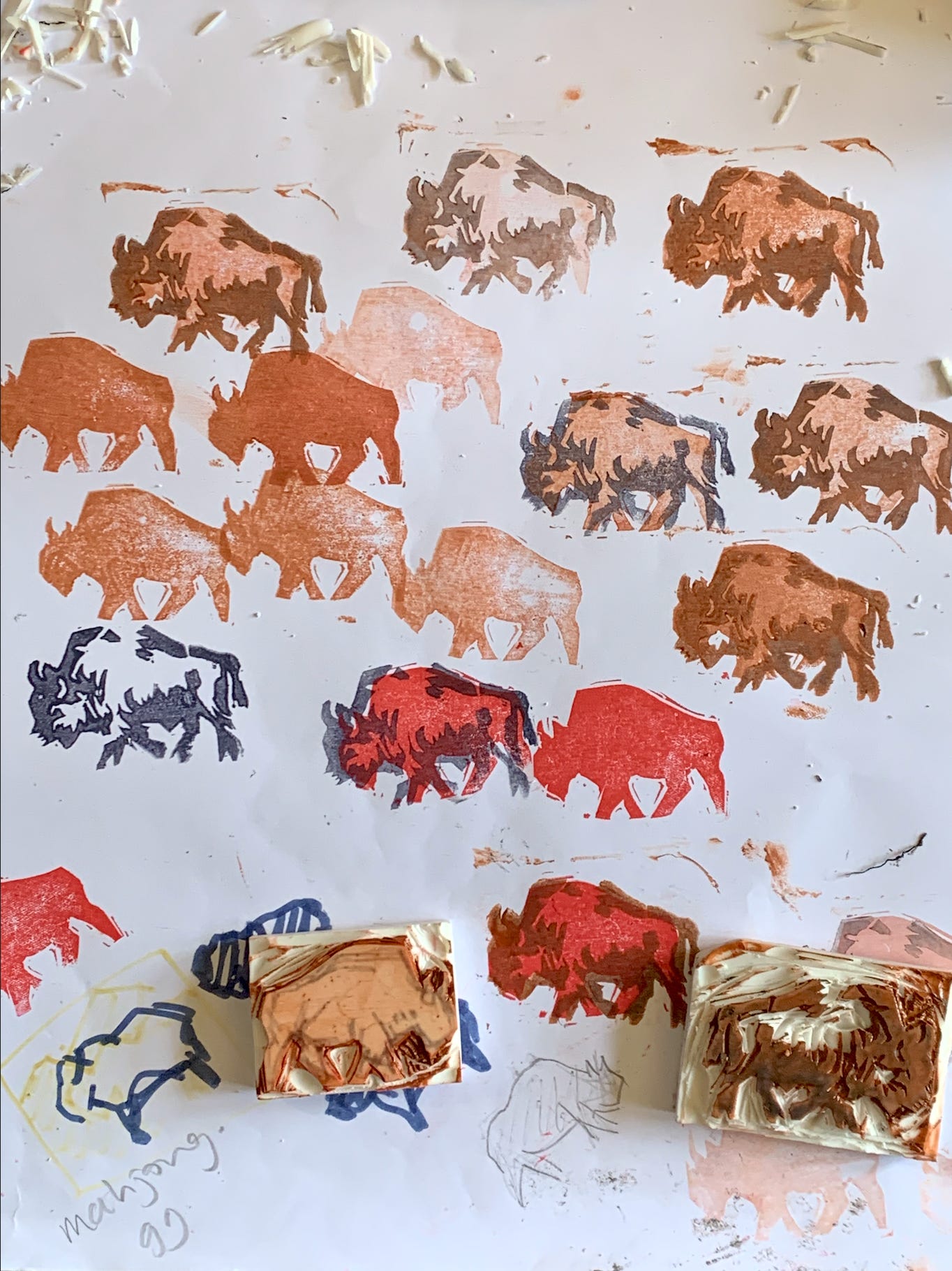 Another idea is to carve your own initials - like a branding mark (in reverse of course). Holding paper up to a window can act as a light box if you need to do some tracing.
